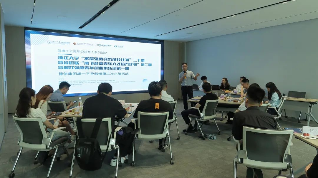 6月18日下午,浙江大学“求是强鹰实践成长计划”二十期暨 “鹰飞燕舞青年人才培养计划”第二期暨时代强鹰青年创业俱乐部第一期“德信控股集团胡一平导师组第二次强鹰师生行”活动在德信空港城会议中心如期举行。三月未见,同学们都迫不及待地向胡老师分享了自己的近况,我们很惊喜的看到,很多同学都在自己的领域上默默前进,一些创业学员在业务端也取得了不错的成绩。